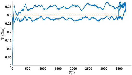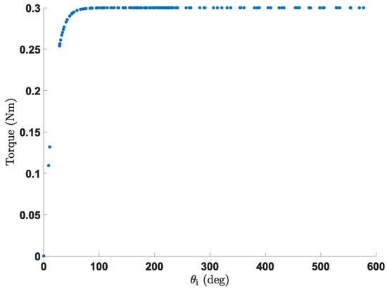 Constant torque springs feature some hysteresis, which needs to be tested to observe its influence. This hysteresis is usually around as shown in Figure 22. In this figure, the torque–deflection curve has been experimentally measured for a constant torque spring of Nm.