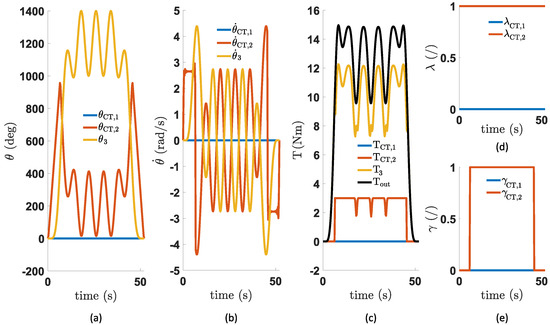- Torque-equality constraintIt needs to be imposed that the sum of the torques of each unit should be equal to the output torque. The constraint is intrinsic to the system for each case and is written as follows:
