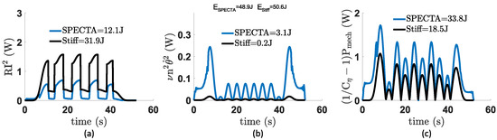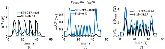 For the measured SPECTA (a), the total energy consumption becomes J and that of the simulated (b)— J. To draw some more in-depth conclusions about the practical working of the SPECTA and to retrieve some detailed efficiency and energy recuperation data, the design should first be optimized before it is tested. Otherwise, some false conclusions could be made as a consequence of a non-ideal design. This is, however, to be attempted in future work.
