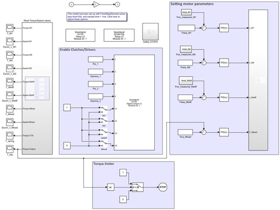 Overview of the simulink script that was used to perform the tests. All motors were separately tuned and some safety mechanisms were added.