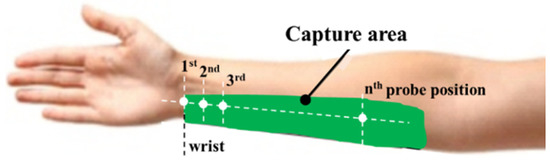 Figure 6. From the left, the origin of this area is the wrist, where the first probe position is defined as first position. Other positions (white points in