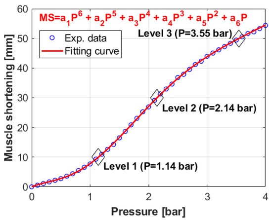 Then, three muscle shortening (MS) levels have been chosen for the application: 10 mm, 30 mm and 50 mm. Solving the equation reported in