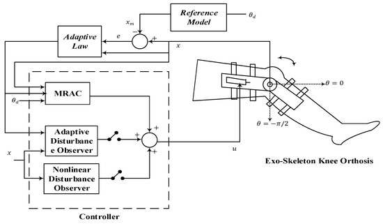 - Rifaï, H.; Mohammed, S.; Daachi, B.; Amirat, Y. Adaptive control of a human-driven knee joint orthosis. In Proceedings of the 2012 IEEE International Conference on Robotics and Automation, Saint Paul, MN, USA, 14–18 May 2012; pp. 2486–2491. [Google Scholar]