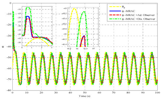 - The desired position trajectory is taken as sinusoidal waveform ranges between (−45 to −75 Deg.) with initial condition of −60 Deg.
