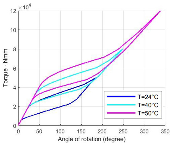 Figure 13. Torque-Angle diagram at 24 C 40 C and 50 C.