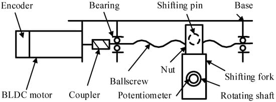 The simplified diagram of the EMA system is shown in Figure 1. The EMA mechanism consists of a ball screw, nut, shifting pin, shifting fork, rotating shaft, brushless direct current motor, and coupler.