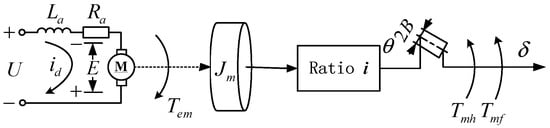 The brushless direct current motor (BLDCM) (shown in Figure 2, represented by the symbol M) is used to drive the mechanism of the EMA system. The transmitted torque and the motion relationship between the actual position and backlash is expressed by Equation (1).