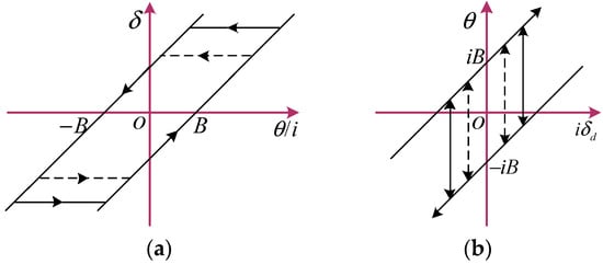 The schematic diagrams of the Hysteresis and Hysteresis inverse model are shown in Figure 6. The backlash characteristic is shown in Figure 6a. The backlash inverse shown in Figure 6b is used to cancel the effect of the backlash [].