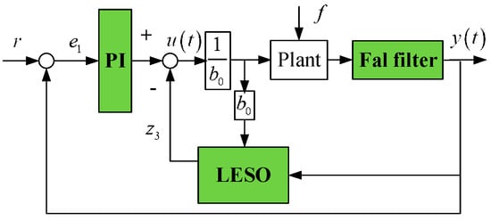 The improved ADRC is established by employing a proportional integral (PI) controller, LESO, and Fal function filter. Figure 8 shows the components of the improved ADRC.