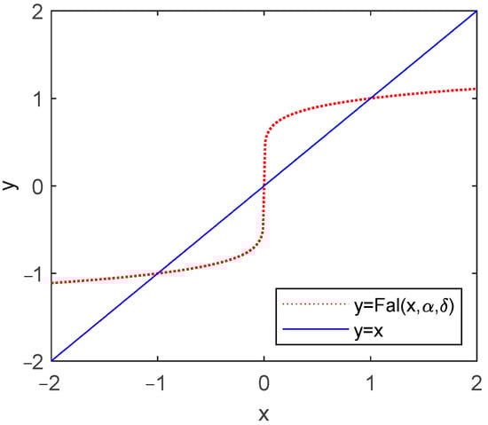 The fitting curve of the Fal function [] is presented in Figure 9. It implies that the larger the error between input and output, the smaller the gain, and vice versa []. The Fal function filter is as follows: