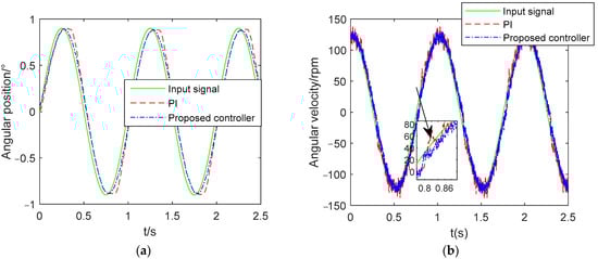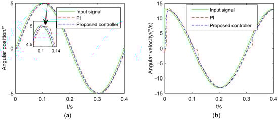 Response of 5sin (5πt) (a) Position tracking curve; (b) Speed tracking curve.