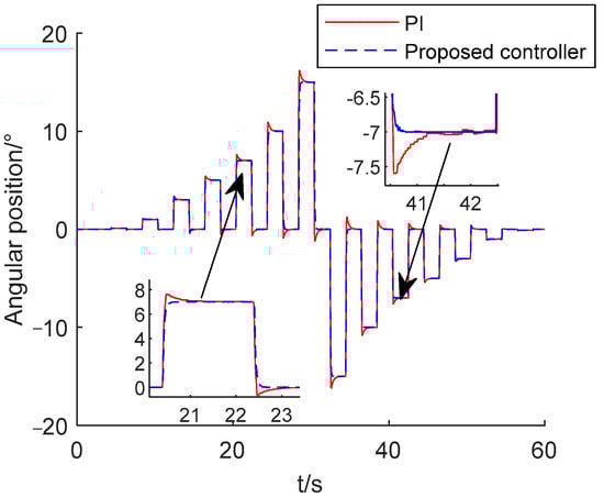 Figure 15 shows the sine wave response for the PI controller and proposed controller. It is seen from Figure 15 that the PI controller cannot deal with the phenomenon of the speed dead zone and position flattening, when the system speed tends to 0, but the new compound controller can solve this problem well. It can be seen that the proposed controller effectively suppresses the nonlinear factors.