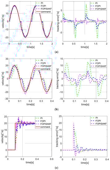 To verify the advancement of the proposed compound control algorithm, performance comparison experiments under different control methods were conducted. The control methods include: (1) PI, (2) FOPI and (3) FOPI + SAKF (FOPISAKF). To ensure the validity of the comparison, we used the method described in Section 3.1 to obtain the parameters of the PI controller.