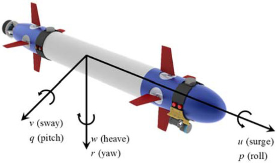 According to Fossen [12], the mathematical model of the discussed torpedo-like underwater vehicle can be formulated as follows: