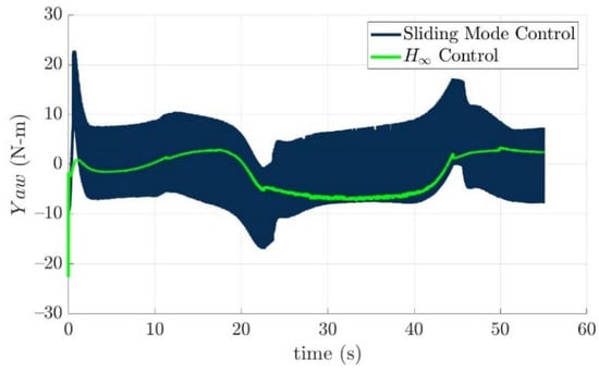 Yaw moments of the developed torpedo-like underwater vehicle with respect to the sliding mode control law and the nonlinear H∞ control law.