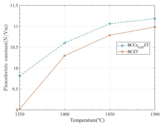 - Supported by the currently available data, Ce doping and elevated temperature (between 1350–1500 °C) will increase the piezoelectric constant of the (Ba0.85Ca0.15)(Zr0.1Ti0.9)O3.