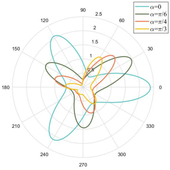 The above conclusions are all when . Due to the particularity of the triangle, different also affect the stress concentration of the defects. Here we take BCCe0.05ZT as an example to explore the effect of on stress concentration.