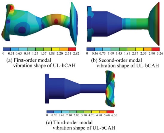 The modal analysis and harmonic response analysis of the optimized L-BCH was performed. The modal analysis was shown in Figure 13. Harmonic response analysis was conducted from 18,000 Hz to 22,000 Hz at a step of 100 Hz. In Figure 14, the amplitude-frequency response curve of the optimized L-BCH was plotted.