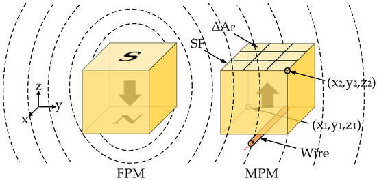 The magnetic flux density generated by each MPM at any point (x; y; z) in the Cartesian coordinate located outside the MPM can be calculated via the magnetic charge model presented in Equations (4)–(6) [32].