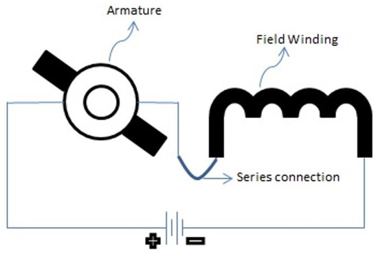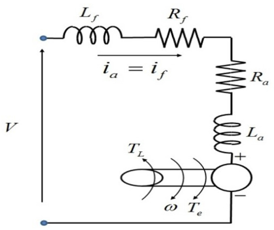 The electric diagram of the series-wound DC motor is shown in Figure 2.