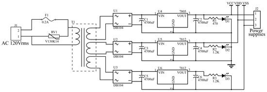 The general scheme of electronic circuits that allows, in a controlled and safe way, reversing the polarization of the motor field coil is shown in Figure 9. The designed electronic circuits allow for the reversal of the direction of rotation of the rotor and monitoring rotor speed, position, and current consumption. In order to operate the motor in real time, it is also necessary a conditioning and signal processing stage.