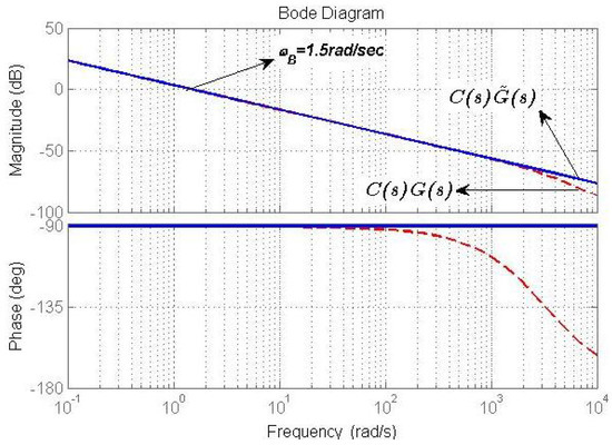 Assuming that all the roots of the polynomial of Equation (23) are Hurwitz and the low-pass filter with a bandwidth , as indicated in Equation (17), it is clear that in the low range of frequencies :