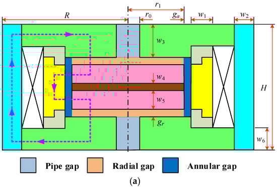 Figure 1 displays the five fluid flow zones divided by the proposed MR valve, which are divided into three different types of fluid flow channels. More specifically, the pressure drop at the circular pipe flow paths can be approximately calculated by