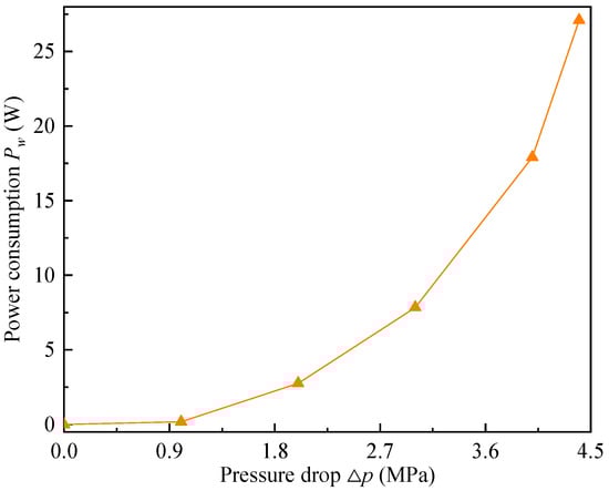 Figure 5 portrays the power consumption of the initial MR valve at different pressure drops. It can be distinctly found that the power consumption significantly rises with the increment of pressure drop. This is because, as the current increases, the internal magnetic field of the MR valve will gradually reach the magnetic saturation state, and the pressure drop will also tend to the maximum value, resulting in a substantial improve in the power consumption of the MR valve. Normally, the power consumption of the initial MR valve can reach 27.1 W at the applied current of 1.6 A.
