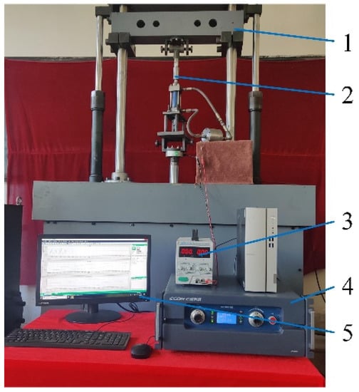 Experimental test rig of the proposed MR valve-controlled cylinder system: 1. Damper test system, 2. MR valve-controlled cylinder system, 3. DC power supply, 4. Electro-hydraulic servo controller, 5. Computer.