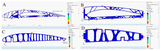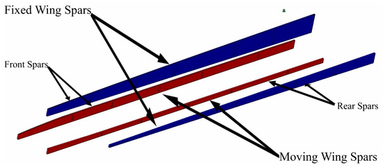 Long-fiber composite materials, widely utilized in the aerospace industry, would be very good candidates for this application. However, the spars should be topologically optimized, and so there would be several regions with cut-outs, according to an earlier investigation in which aluminum alloy 2024-T3 was used for the wing spars’ design [31].