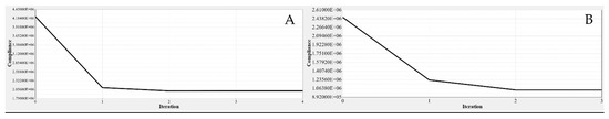 The objective function is defined to minimize the design structure’s compliance while maximizing its stiffness that meets the requirements under the given constraints. The objective function can be mathematically represented as follows: