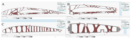 Optimization techniques are receiving increased attention in the aviation field because they are considered the most effective approaches for decreasing a structure’s weight while increasing its global stiffness [45]. The topology optimization was performed using the SolidThinking Inspire software, while the sizing optimization was performed using the HyperMesh (OptiStruct) software. The Inspire and OptiStruct codes were designed using the (Solid Isotropic Material with Penalization) SIMP method [46].