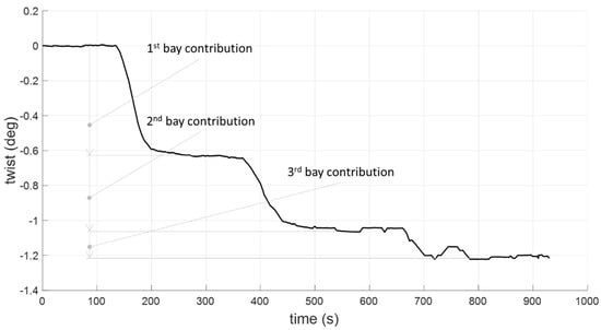 Twist measured by the inclinometers for the progressive activation of the bays form the root to the tip.