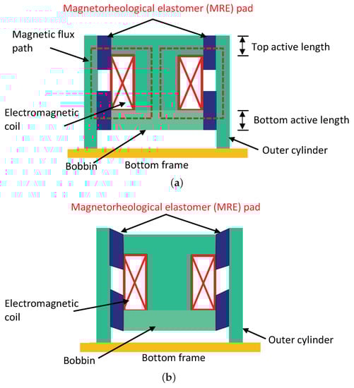- Bastola, A.K.; Li, L. A New Type of Vibration Isolator Based on Magnetorheological Elastomer. Mater. Des. 2018, 157, 431–436. [Google Scholar] [CrossRef]