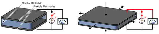 - Pelrine, R.; Kornbluh, R.; Joseph, J.; Heydt, R.; Pei, Q.; Chiba, S. High-field deformation of elastomeric dielectrics for actuators. Mater. Sci. Eng. C 2000, 11, 89–100. [Google Scholar] [CrossRef]