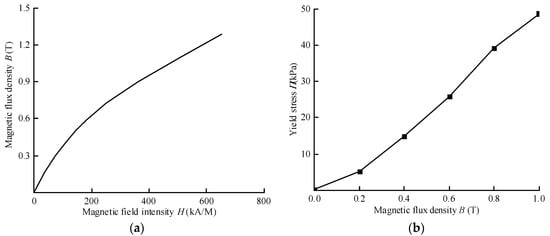 The performance curves of MR fluids: (a) B-H curve; (b) τ–B curve.