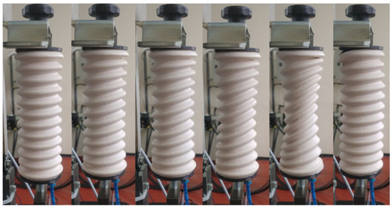 This resulted in the uncoupling of the bellow and the top lid as depicted in the last frame of Figure 4. With the attempt to resolve this issue, the bellow and the top lid were glued together; however, in that case, the two middle reinforcement rings slipped out from their corresponding bellows ribs, thus deforming the structure of the device and disabling the spring effect needed for returning the muscle to the initial position.