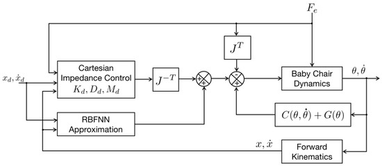 In this paper, based on a literature survey [30,31] and market research where we collect consumers’ opinions through questionnaires and interviews, we hope to open up new growth space for baby chair designs and meet the diverse needs of children and parents. For this aim, we redesign the shape and structure of the baby chair to improve its attractiveness and functionality so that it can be used in various scenes for different purposes. Firstly, we improve the structure design of children’s dining chairs so that they can be used not only in dining but also in other scenes for other purposes. Concretely, the designed baby chair has more usage modes than the dining chair, including a baby chair mode, reclining chair mode, and storage mode. Secondly, we combine more functions to make the baby chair multifunctional. The designed baby chair is combined with artificial intelligence to enrich the design of products and to meet the psychological and emotional needs of children and parents, enriching the sense of experience. This multifunctionality makes our baby chair more novel and user-friendly than other best-selling products. Moreover, we augment the intelligent functionality of the baby chair by implementing a robotic control of the designed product for a better user experience. Although manual posture adjustment of the chair could be performed through buttons, accuracy, safety and stability cannot be ensured, especially in the presence of children, due to different body sizes and weights, and due to the uncontrollable and unpredictable movement of children. For this reason, we adopt a neural approximation-enhanced Cartesian impedance controller to guarantee control safety and to adapt to various unpredictable and uncertain situations. Finally, we verify its feasibility in terms of control smoothness and control accuracy through a simulation of a periodic trajectory tracking task. The contributions of this paper are listed as follows: