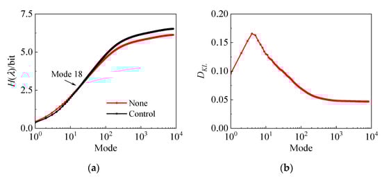 - In the TBL, the probability of low-order modes (large-scale turbulent events) is high, the information entropy is small, and the events are ordered; the probability of high-order modes (small-scale turbulent events) is low, the information entropy is large, and the events are disorderly. The presence of the synthetic jet makes the large-scale turbulent structures become orderly and the small-scale turbulent structures tend to be disordered.
