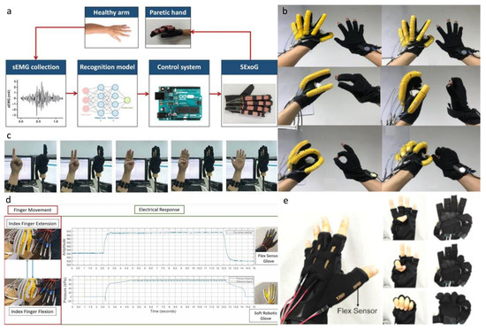 - Polygerinos, P.; Galloway, K.C.; Sanan, S.; Herman, M.; Walsh, C.J. EMG controlled soft robotic glove for assistance during activities of daily living. In Proceedings of the IEEE International Conference on Rehabilitation Robotics, Singapore, 11–14 August 2015; pp. 55–60. [Google Scholar] [CrossRef]