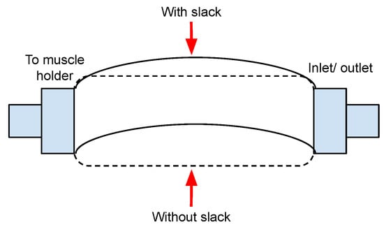 Another difference in this configuration is the use of TMM instead of conventional PAM. Whereas conventional PAM is rigid, TMM is flexible and has slack. The slackness causes a passive contraction range whereby its contractile force does not affect the load displacement, as described in Figure 3 and Figure 4.