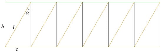 Only two parameters (n, c) are enough to fully define a radially closable Kresling structure. Substituting Equation (2) into Equation (3), we can see that the geometric element is a rectangle rather than an inclined and elongated parallelogram (Figure 6). This can also be verified with Thales’ theorem [51].