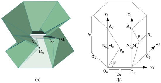 Therefore, the kinematic analysis is simplified by considering each element separately. As can be seen from Figure 13a, in the half-folded state, the open area is equal to the polygon area minus the covered area, which is