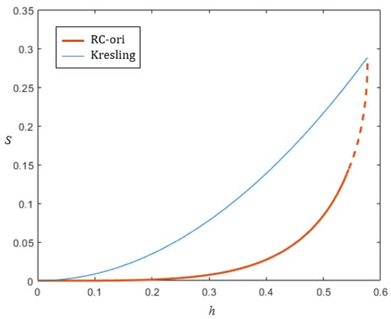 Comparison of the relationship between S and h of the RC-ori structure and the Kresling structure. (n = 6).