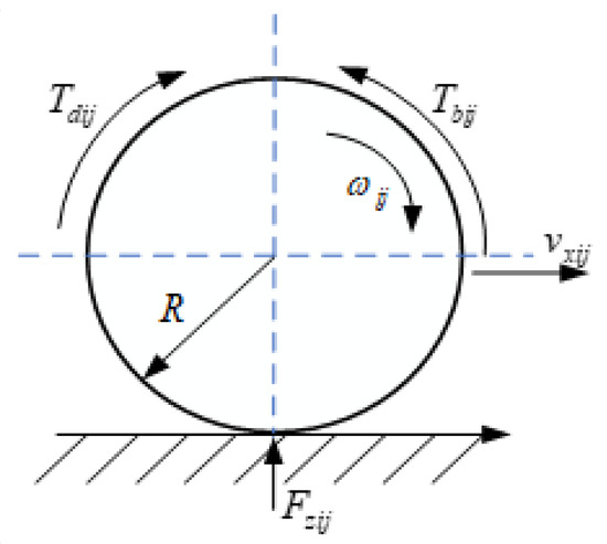When the vehicle is running, the wheels are mainly subjected to the driving torque output by the in-wheel motor, the braking torque applied by the braking system, the rolling resistance torque , and the friction force and the vertical force provided by the ground.