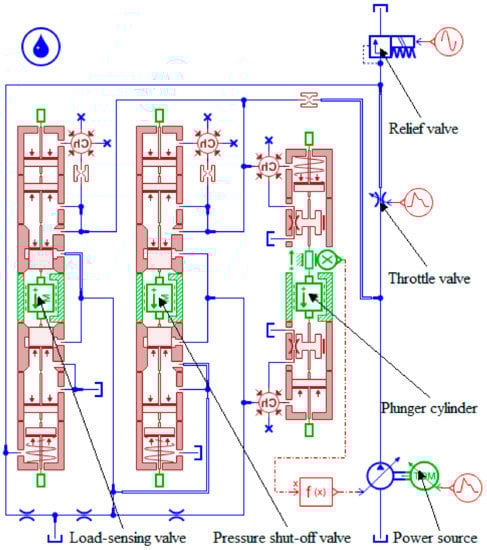 The hybrid system consists of the load-sensing pump, energy recovery and regeneration system, engine system, etc. The load-sensing pump, actuator, multi-way valve, and system model are analyzed below.