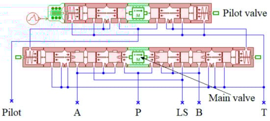 According to Newton’s second law, the load-sensing valve spool mechanical equilibrium equation [] can be described as:
