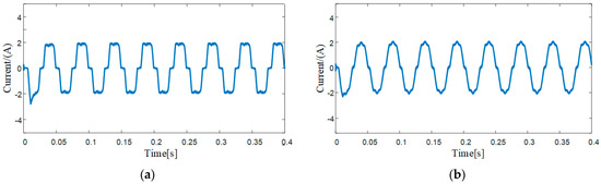 The turn-on, turn-off times and dead zone settings of the switching device cause nonlinear distortion of the device’s actual output voltage waveform, which results in dead zone effects such as the distorted motor current waveform and torque ripple [20]. The distorted stator current contains fifth and seventh harmonics. After Clark and Park transformation, it contains sixth harmonics in the synchronous rotating coordinate system. Finally, these sixth harmonics will be brought into the α-β axis extended back EMF observed by the SMO, and the SMO’s low-pass filter can filter out the sixth and above harmonics. However, the SMO cannot filter the voltage distortion which has a significant impact at low speeds.