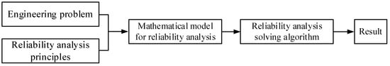 In the process of reliability analysis, the mathematical model is generally established according to the reliability design principle and practical problems. Finally, a suitable algorithm is used to solve the problem. The general solution process is shown in Figure 4.
