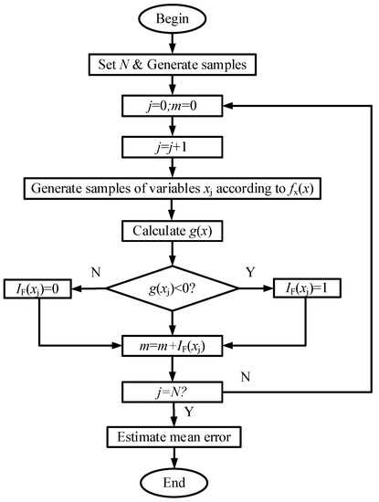 After the mathematical model is established, the Monte Carlo strategy is introduced to conduct the reliability analysis, which is illustrated in Figure 6.